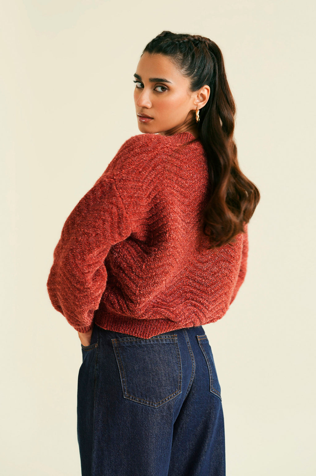 The Brick Red Button Down Sweater adds a vibrant pop of color to your winter wardrobe. Made from 100% polyester, this yarn-dyed sweater features a V-neck, long sleeves, and a short length with a straight hemline, perfect for a bold, stylish look.