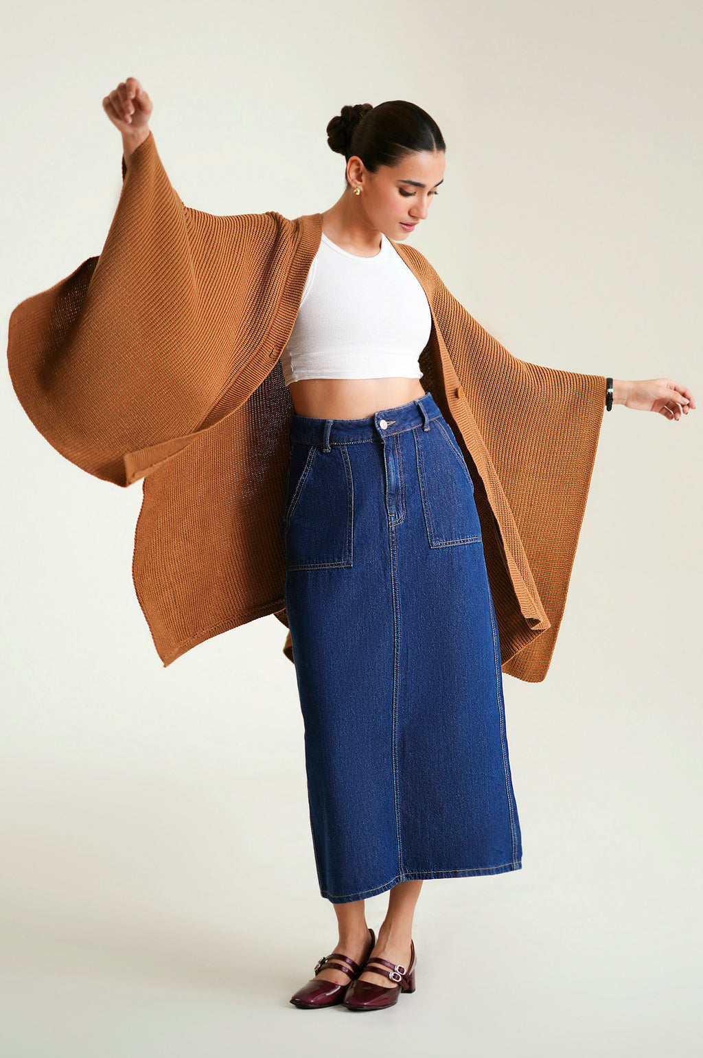Add a layer of warmth and style with the Beige Cape Shawl. Made from 100% acrylic, this yarn-dyed piece offers a front open design and mid-length fit. With long sleeves and a straight hemline, it’s an ideal choice for effortless layering during cooler days.