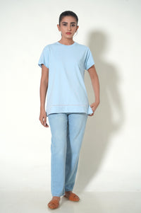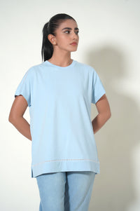This sky blue t-shirt takes comfort to a whole new level! With its funky fit, crew neck, short sleeves, and bold solid colors, you'll be ready to turn heads wherever you go.